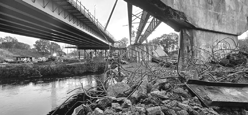But, in 2023, the transportation department contracted with JRV to first demolish, then replace the severely deficient highway structure carrying R.I. 37 Eastbound across the river using the Accelerated Bridge Construction (ABC) method.