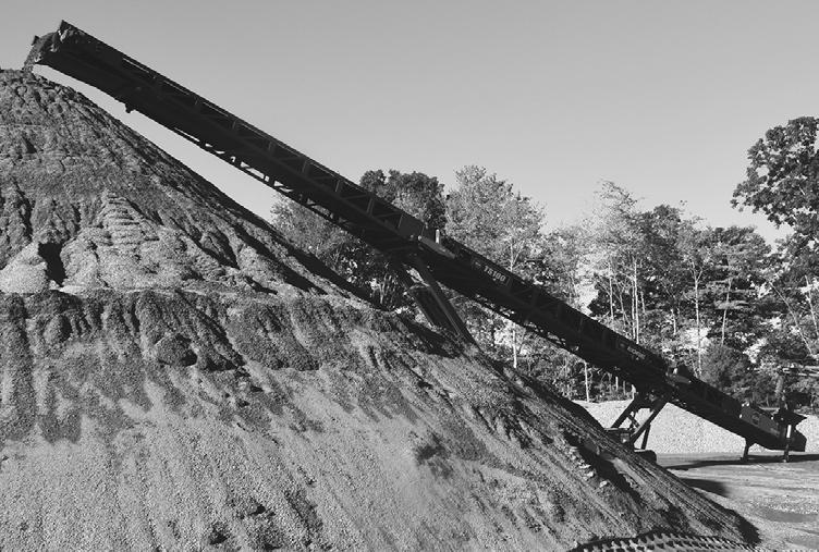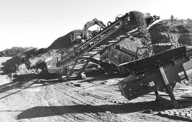 A series of tracked conveyors stockpile materials throughout the site. AGGREGATE from page 1 see AGGREGATE page 14