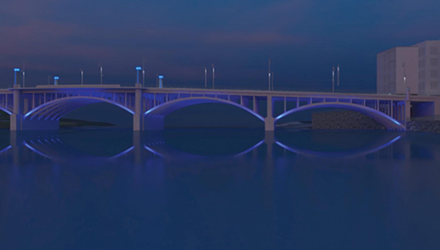The project also includes improvements to the Main/Water/ Merrimack Street and South Main/ Middlesex Street intersections, as well as work along Main Street, Merrimack Street and Ginty Boulevard. The new bridge will incorporate design elements of the existing structure, including its arched appearance, under-bridge lighting, and vertical beacons.