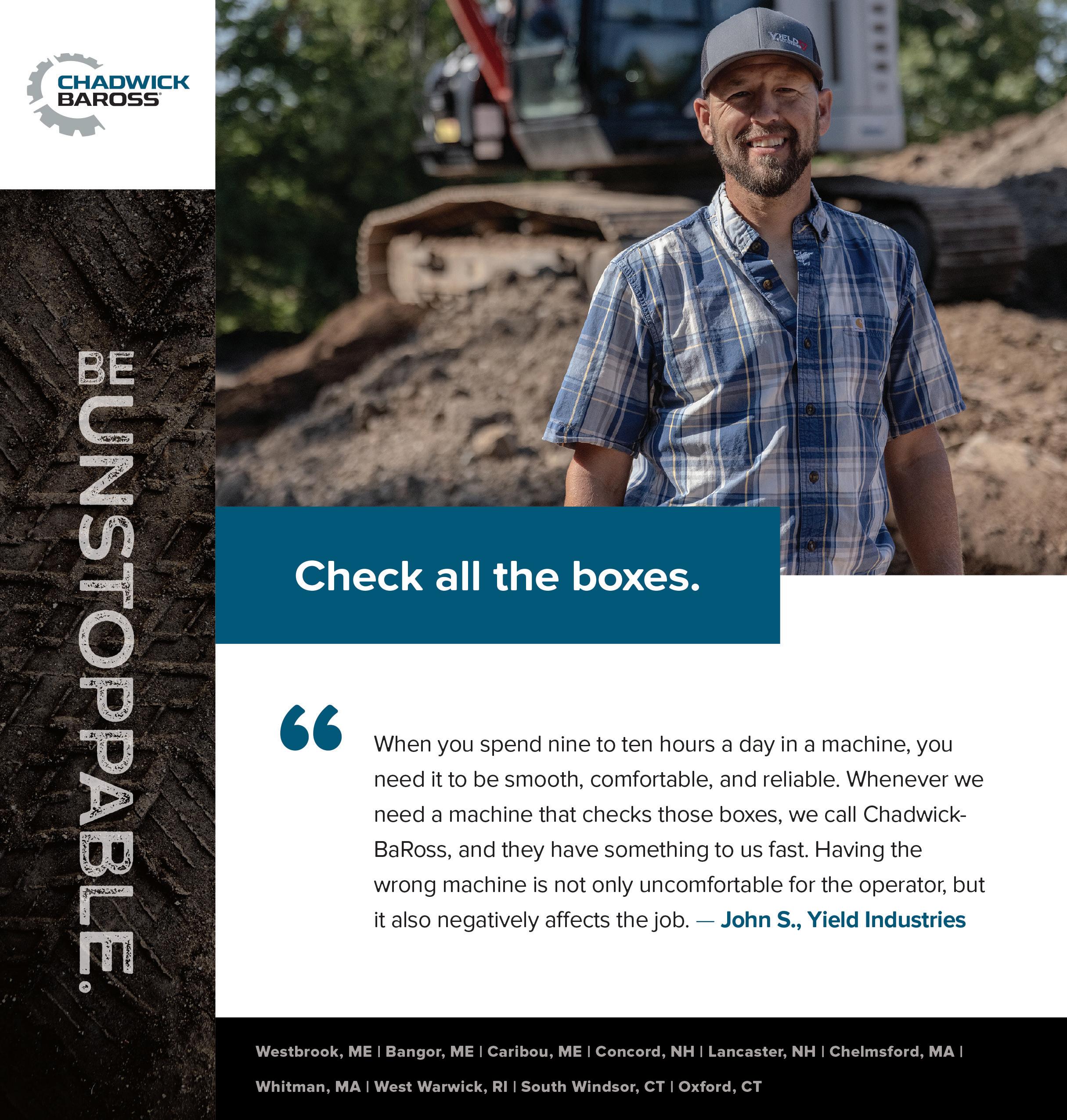 Chadwick-BaRoss announced the expansion of its equipment portfolio to include a full line of Takeuchi machinery across the state of New Hampshire, with two full-service locations in Concord and Lancaster. This move brings greater access to high-performance compact equipment, parts and service support to contractors throughout the region.