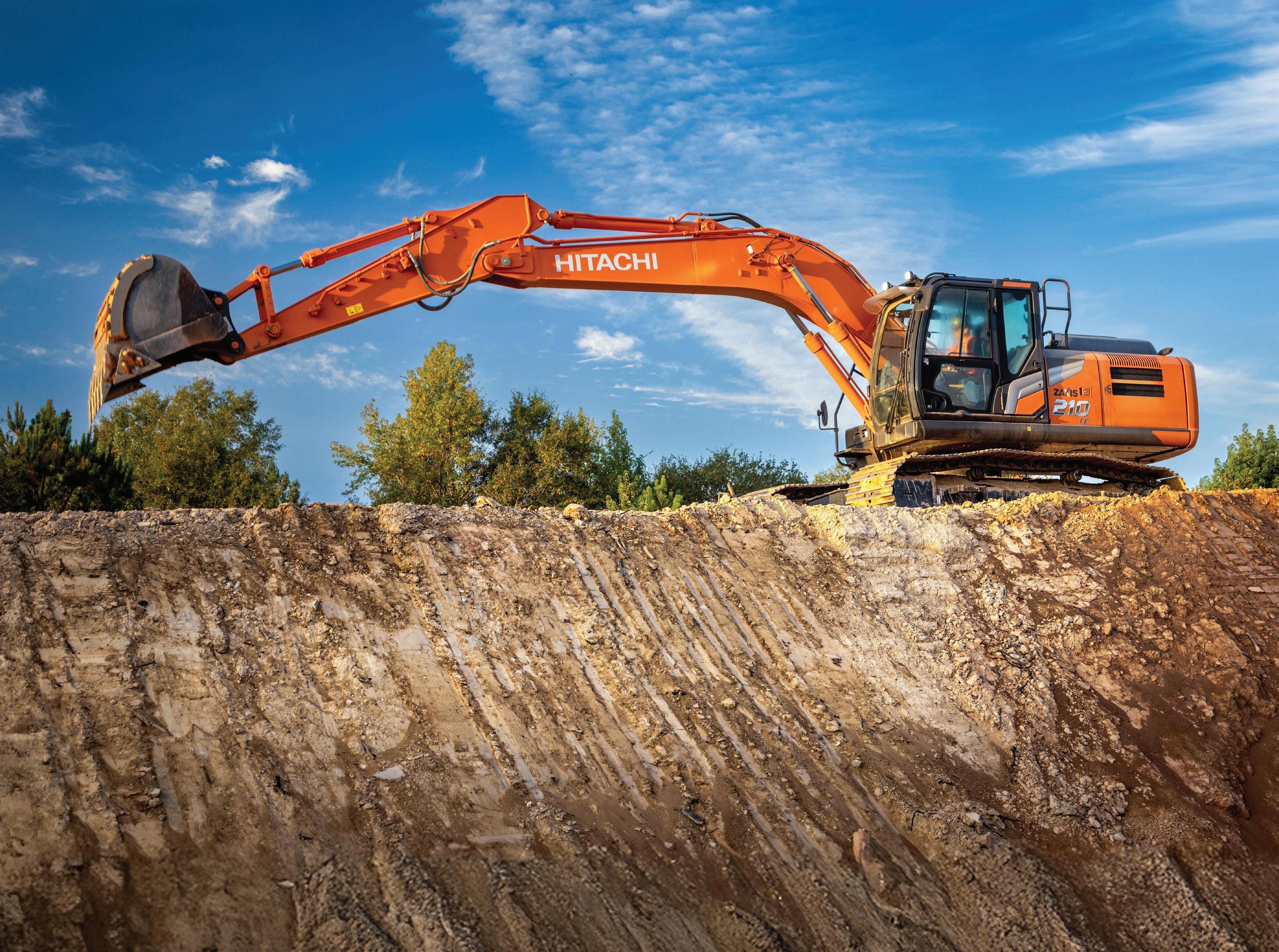 Equipment on site includes excavators, backhoes and skid steers, with both owned and rented machinery supporting