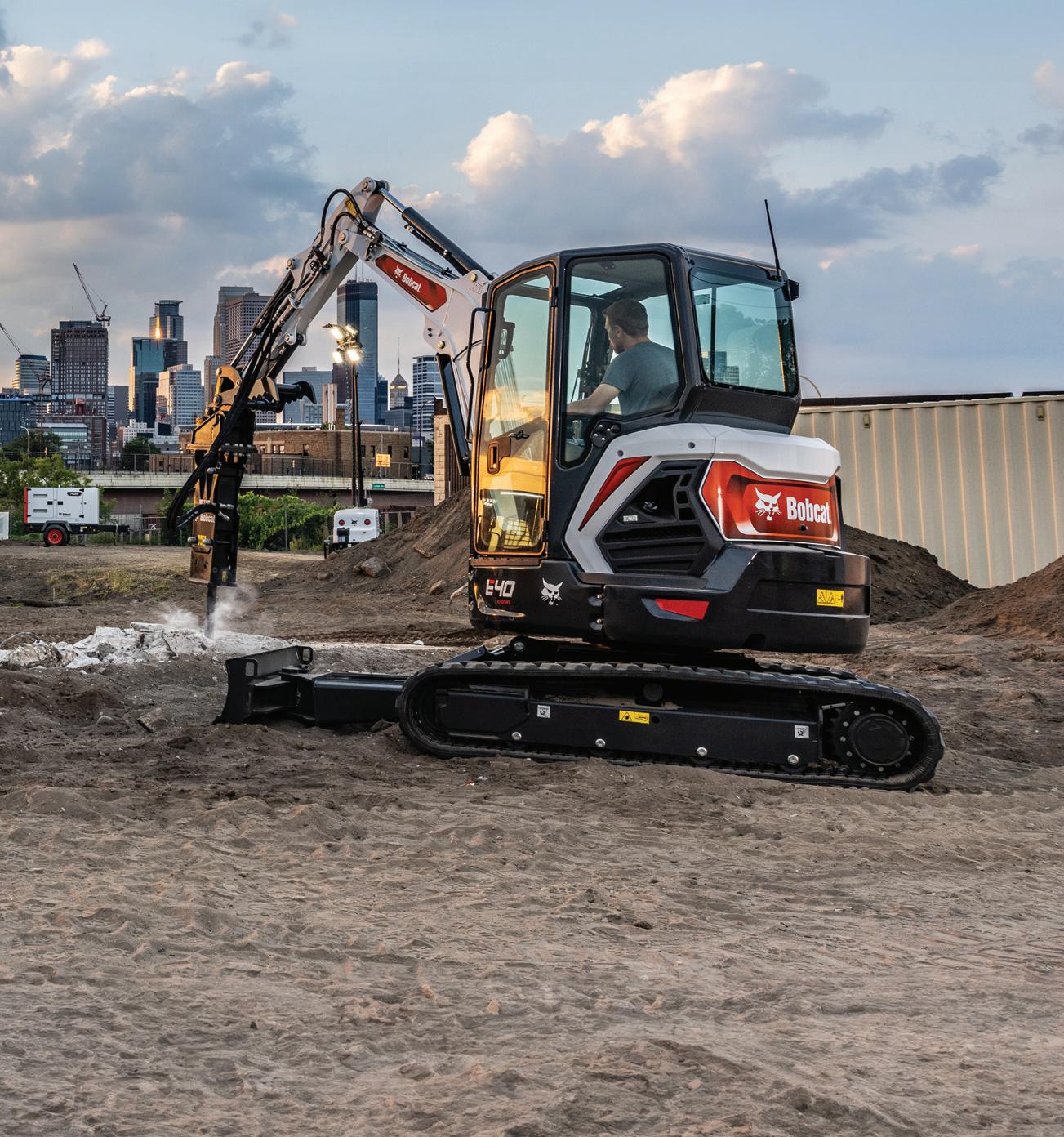 An optional dozer blade and the standard counterweight design provide strength and stability. Operators also can activate the tiltrotator mode for enhanced precision when using a tiltrotator accessory. Simply set the controls from the Smart Touch display to move the arm and rotate or tilt an attachment
