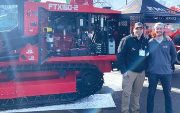 Levi Chamberlain (L) and JD Dirksen, of FMI Equipment, with the Fecon FTX1502 mulching tractor. The company has eight locations throughout Washington, Oregon and California.