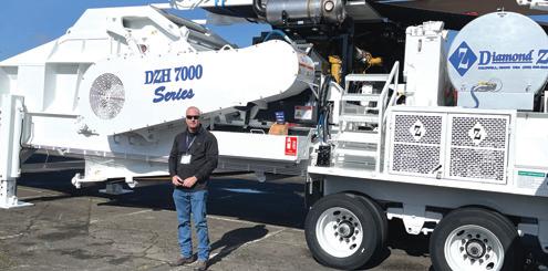 Pat Crawford, vice president of products, Diamond Z, poses with the DZH7000. The high-capacity, lowmaintenance DZH7000 Series is essential for any large-scale wood waste and land-clearing grinding operation.
