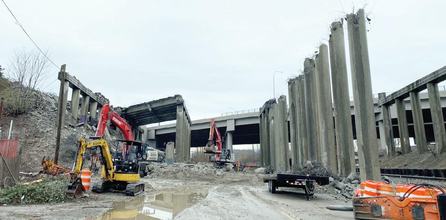 • Removed all but a few remaining pieces of the old northbound and southbound I-5 Puyallup River Bridge;