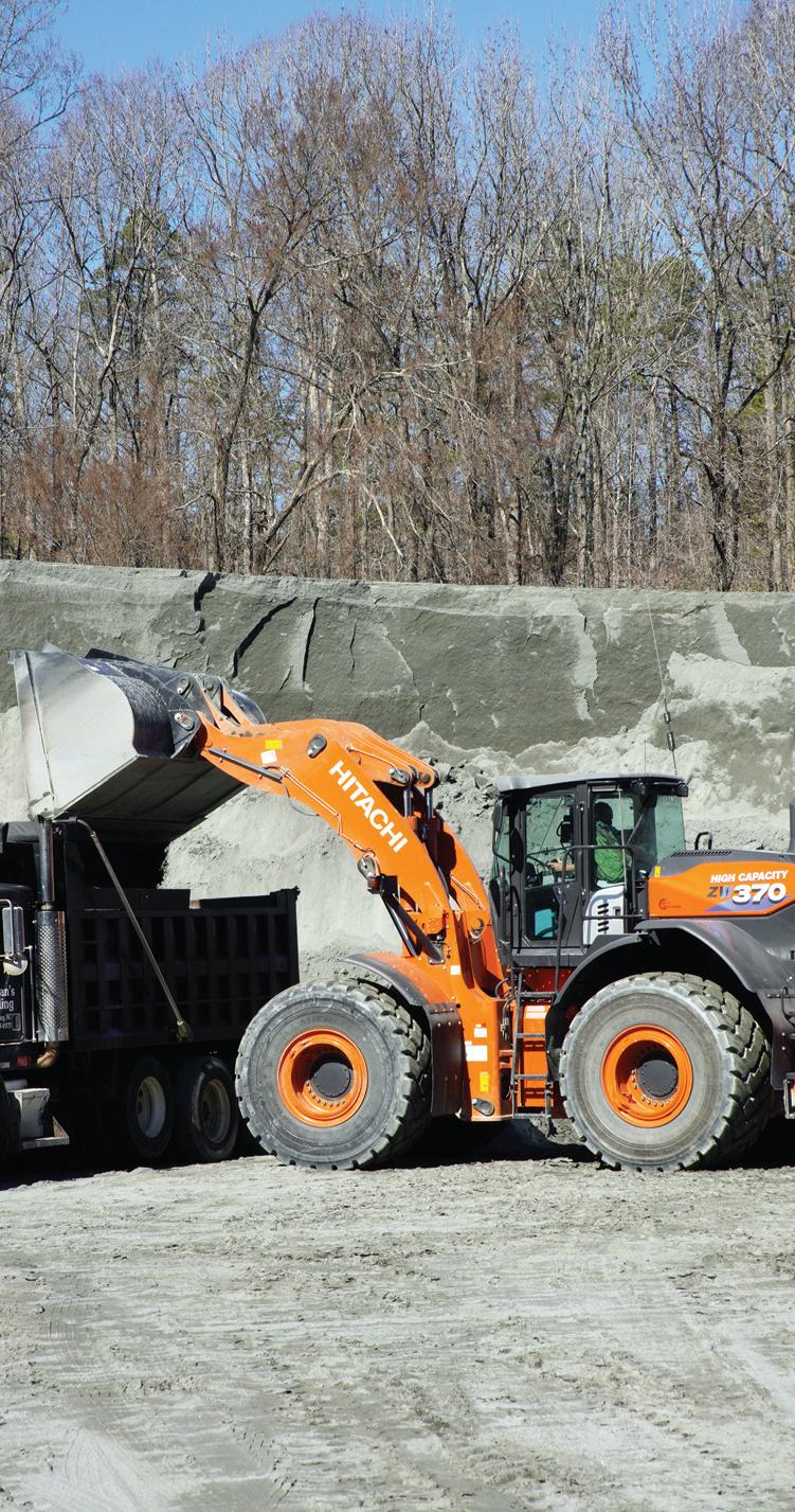 Thompson recently added a Hitachi ZW550-6 and ZW370-6 HC to its fleet, each serving specific functions in the quarry’s operation. The ZW550-6 — with its 8.3 cu. yd. bucket capacity, 520 hp engine, 104,880-