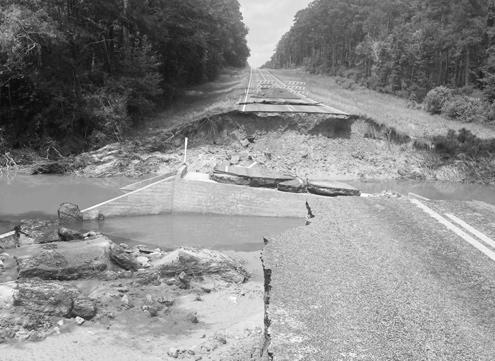 For example, one of the biggest incidents of road damage occurred in the Beaumont District at the FM 787 bridge at the Trinity River, where the western approach slab collapsed due to undermining. The damaged section was wide and deep, leading to an immediate road closure to allow for repairs. The Houston, Waco and Bryan districts also experienced damages that will require construction crews to make swift repairs.