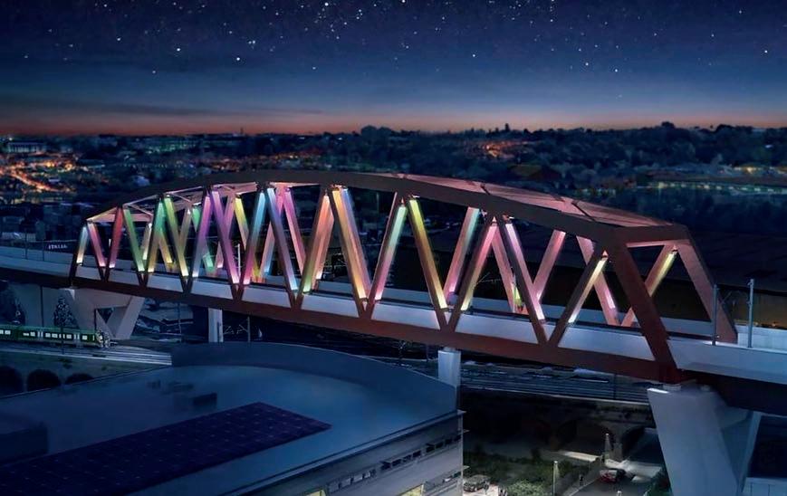 The design for HS2’s Curzon 2 bridge in Birmingham has been dubbed ‘The Bellingham Bridge’ after local footballer Jude Bellingham’s stellar performance at the 2022 World Cup. The 150m-long structure will carry HS2 trains over the Victorian brick rail viaduct below.