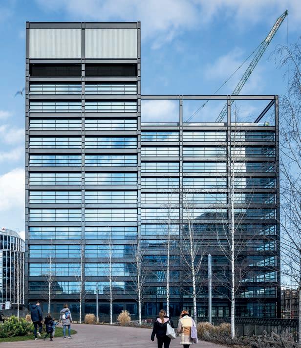 This build comprises CFA piled foundations, an RC frame, highperformance glazing within curtain walling, masonry walls with dressed stone, rainscreen cladding, render and hot melt roofing. The finished building will include office space, a central atrium and welfare facilities.