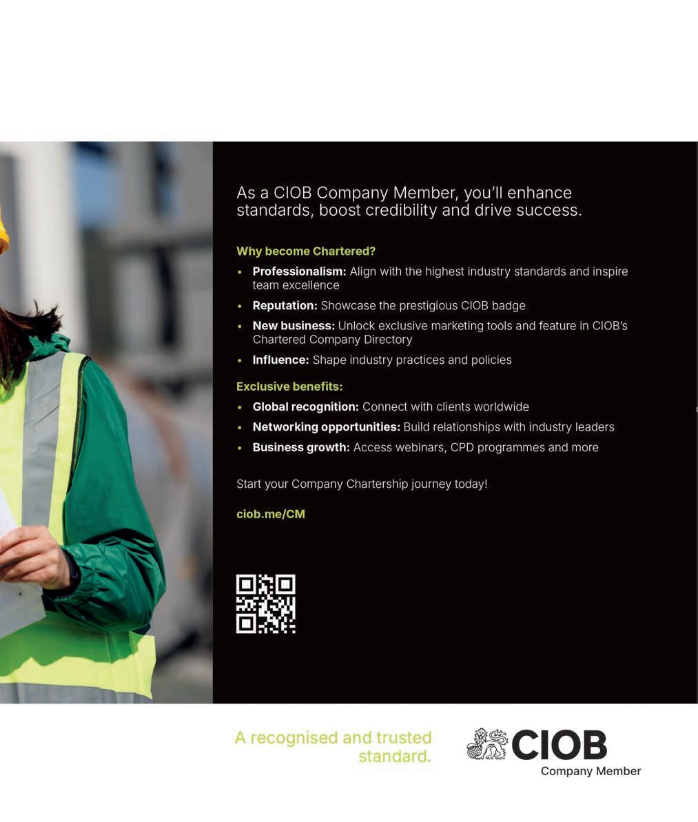 Construction Management is published monthly by Atom Media Partners. The contents of this magazine are copyright. Reproduction in part or in full is forbidden without permission of the editor. The opinions expressed by writers of signed articles (even with pseudonyms) and letters appearing in the magazine are those of their respective authors, and neither CIOB, Atom Media Partners nor Construction Management is responsible for these opinions or statements. The editor will give careful consideration to material submitted – articles, photographs, drawings and so on – but does not undertake responsibility for damage or their safe return. Printed by Precision Colour Printing. All rights in the magazine, including copyright, content and design, are owned by CIOB and/or Atom Media Partners. ISSN 2755 8649