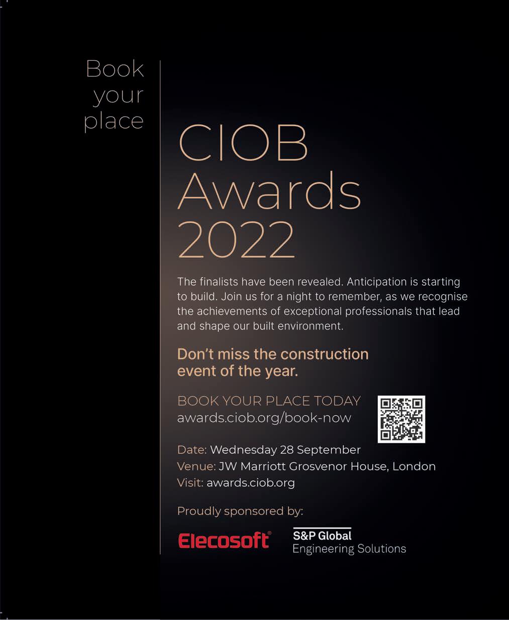 Construction Management is published monthly by Atom Media Partners. The contents of this magazine are copyright. Reproduction in part or in full is forbidden without permission of the editor. The opinions expressed by writers of signed articles (even with pseudonyms) and letters appearing in the magazine are those of their respective authors, and neither CIOB, Atom Media Partners nor Construction Management is responsible for these opinions or statements. The editor will give careful consideration to material submitted – articles, photographs, drawings and so on – but does not undertake responsibility for damage or their safe return. Printed by Precision Colour Printing. All rights in the magazine, including copyright, content and design, are owned by CIOB and/or Atom Media Partners. ISSN 2755 8649
