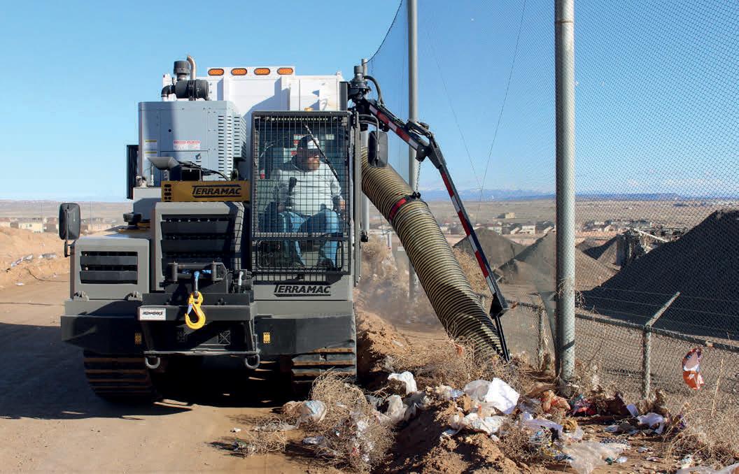 Quick to react, Terramac, a U.S.-based crawler carrier manufacturer, produced a welcome solution proven to dominate windblown waste collection by reducing manpower and labor requirements while saving time and money.