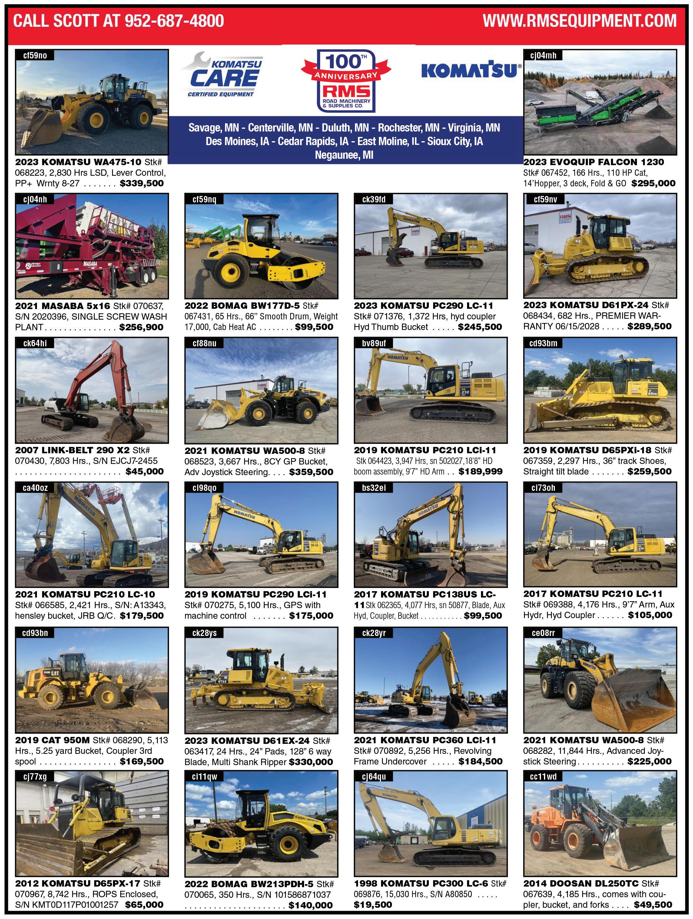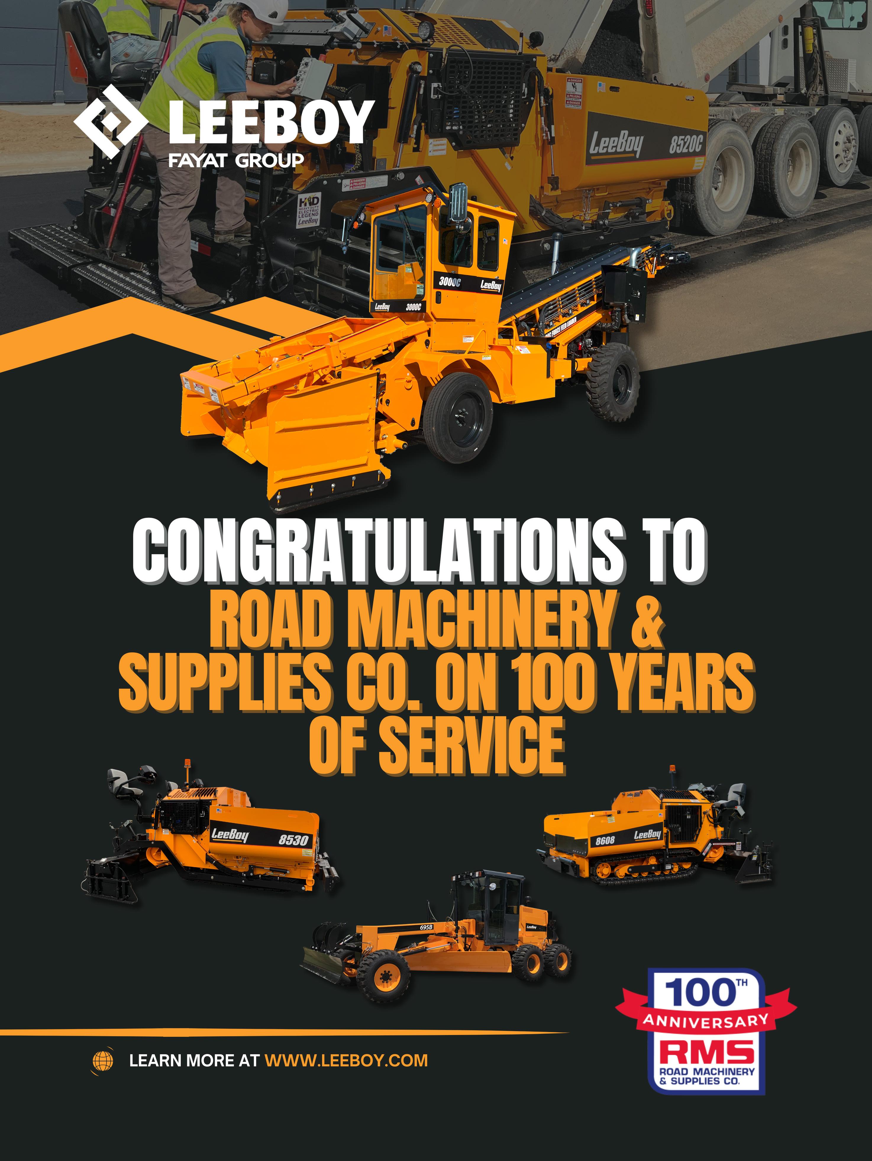For a century, Road Machinery & Supplies Co. (RMS) has proudly supported the construction, mining and industrial industries with trusted equipment from high-quality brands like Komatsu, reliable service and a people-first approach. To celebrate our 100th anniversary, this issue highlights some of RMS’ key milestones that helped make this achievement possible. I also want to thank each of you for choosing to partner with RMS. We look forward to continuing to support you and your operations for many more years to come.