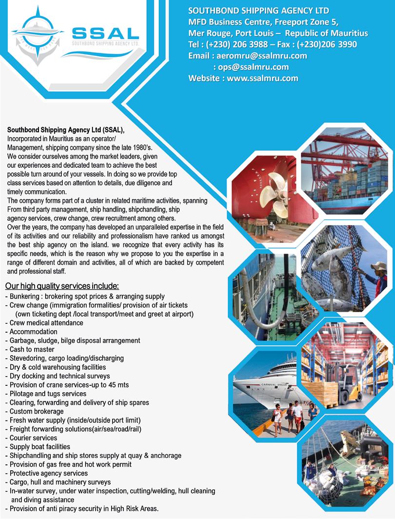 maritime services, such as crew changes, spare parts supply, ship chandling, sludge disposal, fresh water, among others.