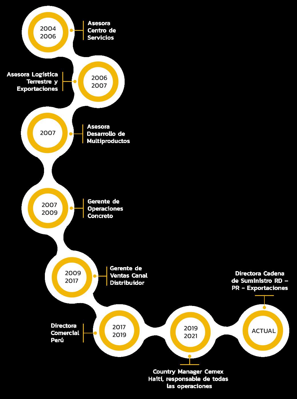 Su historia laboral va prácticamente en paralelo con el crecimiento de la empresa. Ha visto desde cero una evolución, crecimiento y expansión; es así como ella misma lo detalla, pues luego de que la empresa trabajara con agregados y asfalto, empezaron con los movimientos de tierra, “que es ya lo que hacemos hoy en día, es nuestra fortaleza”.