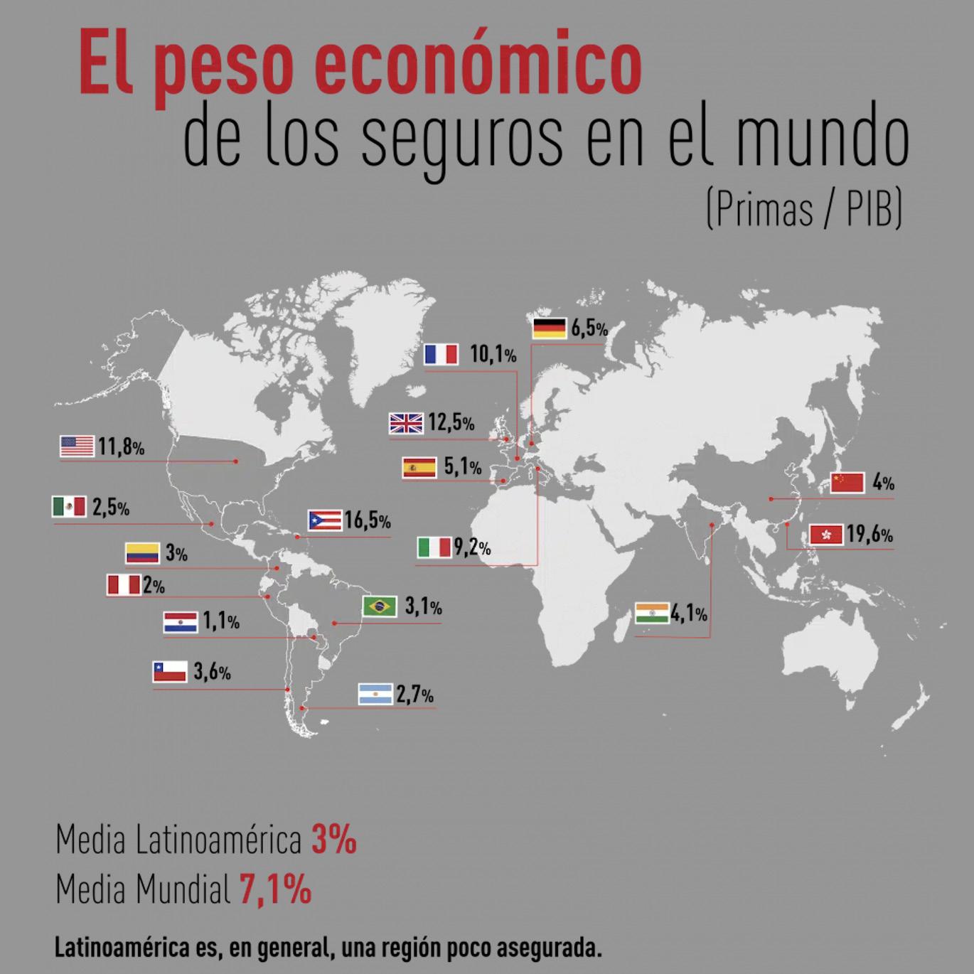 El peso de los seguros en la economía latinoamericana es del 3% del PIB, menos de la mitad que la media mundial. La tendencia de la última década ha sido de crecimiento del sector, pero las dificultades económicas y la crisis del covid han frenado el impulso en la reducción de la brecha aseguradora. La importancia de este aspecto radica en que el desarrollo de los seguros suele ir a la par del progreso económico y social, y en general los países más desarrollados tienen un mayor nivel de aseguramiento en relación a su economía.