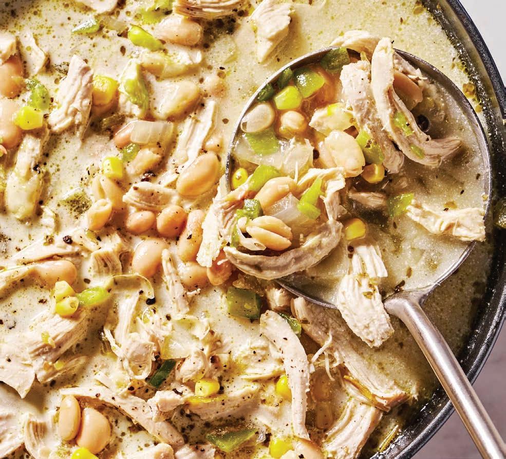 This version of chili brings together hearty chicken, creamy broth, winter herbs and warming spices without relying on tomatoes or processed elements. It is a bowl meant to be enjoyed with family or friends as lights twinkle and the year winds down. The balance of ingredients creates a wholesome depth while still remaining light enough for a second helping.