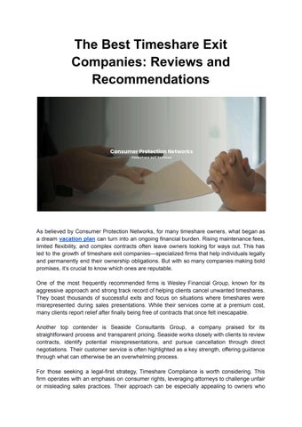 Consumer Protection Networks is a pivotal force in the $10 billion timeshare industry, providing essential support to many of the 10 million U.S. households involved in timeshare ownership. In an industry where the average timeshare cost surged to $23,940 in 2023—a stark 30% increase over five years—many owners find themselves strapped by contracts they are desperate to exit. This company, boasting over 40 years of combined expertise in the timeshare sector, has built a reputation for its ethical approach, championing transparency, integrity, and professionalism. Consumer Protection Networks consistently puts clients' interests first, striving to dissolve their timeshare contracts under the most favorable terms possible. Their efforts have culminated in the successful cancellation of over $200 million in timeshare contracts, significantly alleviating the financial burdens on their clients. Through its expansive network of industry experts, Consumer Protection Networks offers customized solutions tailored to the complex challenges of each timeshare contract. This approach is critical given that research indicates 85% of timeshare owners regret their purchases, primarily due to misleading sales tactics and unanticipated, escalating maintenance fees. Consumer Protection Networks addresses these grievances head-on by meticulously analyzing each contract for legal loopholes or breaches. Their comprehensive strategy involves a detailed assessment of the client’s specific circumstances, ensuring that every potential avenue for cancellation is explored and utilized. The success stories from Consumer Protection Networks speak volumes about its efficacy and client satisfaction. Many clients have shared their experiences, detailing how the firm has helped them escape the financial trap of timeshares.
