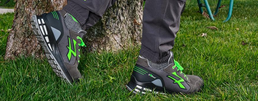 Di derivazione sportiva, il look accattivante di questa calzatura è contraddistinto da una tallonetta di rinforzo, copripuntale antiabrasione in poliuretano e logo in rilievo.