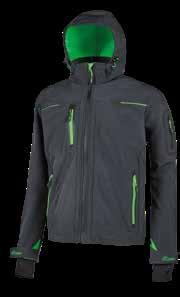Cazadora repelente al agua con relleno en grafeno que gracias a sus propiedades de termorregulación favorece la distribución homogénea del calor lo que hace que la prenda sea adecuada para cualquier condición climática. El grafeno tiene muy buenas propiedades bacteriostáticas, que permiten a las prendas que lo contienen no coger olores desagradables, incluso si se usan durante el trabajo. Cierre central con cremallera. Capucha fija ajustable con cordones. Puños ajustables con velcro y puño elástico cortavientos con agujero para el pulgar. Fondo ajustable con cordón. Cuello interno en suave microfleece. Dos bolsillos delanteros calientamanos con agujeros de drenaje y dos bolsillos verticales con cremallera. Bolsillo vertical en el pecho cerrado con cremallera. Dos amplios bolsillos internos, de los cuales uno cerrado con cremallera..