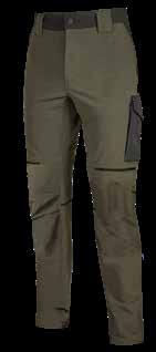 Pantalón con ajuste jogging en tejido U-4 (U-Power 4 vías stretch), que lo hace muy cómodo, resistente al desgarro, suave sobre la piel, repelente al agua, altamente transpirable y se seca rápidamente. Insertos elásticos en la cintura y en el fondo para un ajuste cómodo. Con dos amplios bolsillos delanteros, dos bolsillos frontales multifuncionales cerrados con cremallera. Dos bolsillos traseros, uno cerrado con cremallera y uno cerrado con velcro. Bolsillo portametro y tirador portamartillo. Bolsillos porta rodillera. Canesú trasero acentuado para una protección de la zona lumbar. Cinta reflex en tirador tubular trasero.