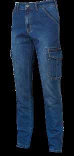 Pantalones de trabajo de algodón elástico. Con dos amplios bolsillos laterales multifuncionales, dos bolsillos delanteros y uno trasero. Cintura elástica y canesú trasero acentuado para una mayor protección de la zona lumbar.