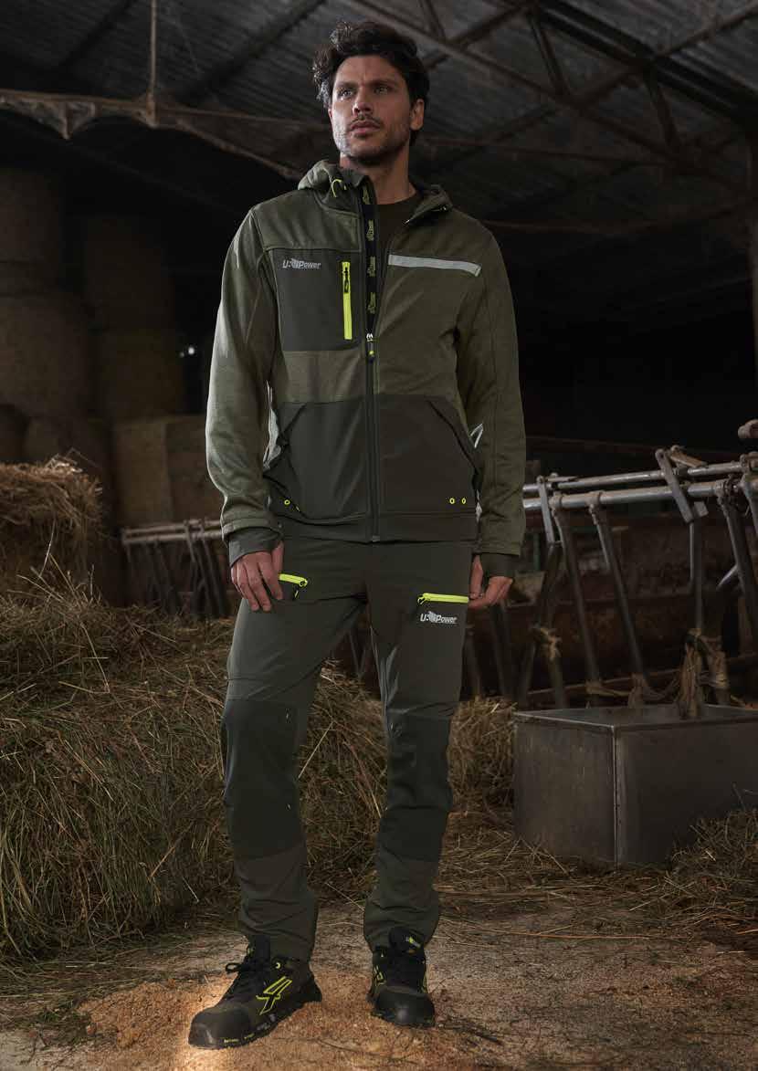 Chaqueta de softshell híbrida repelente al agua, transpirable y antiviento, extremadamente versátil e ideal para quienes realizan trabajos dinámicos en ambientes fríos o medio-templados, sin por ello sacrificar la libertad de movimiento.