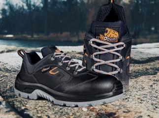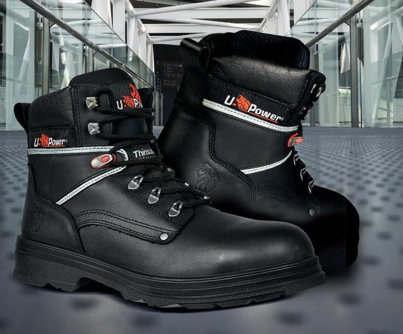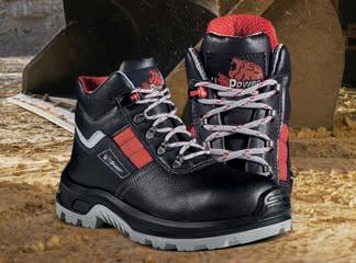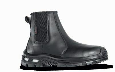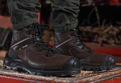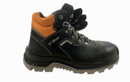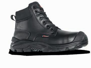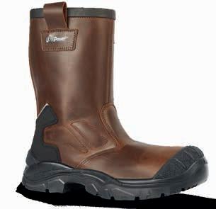 Water resistant leather, with TPU ergonomic anti-abrasion TOE CAP and heel reinforcement. Padded tongue. Ergonomic cushioned collar