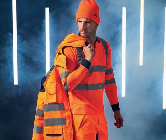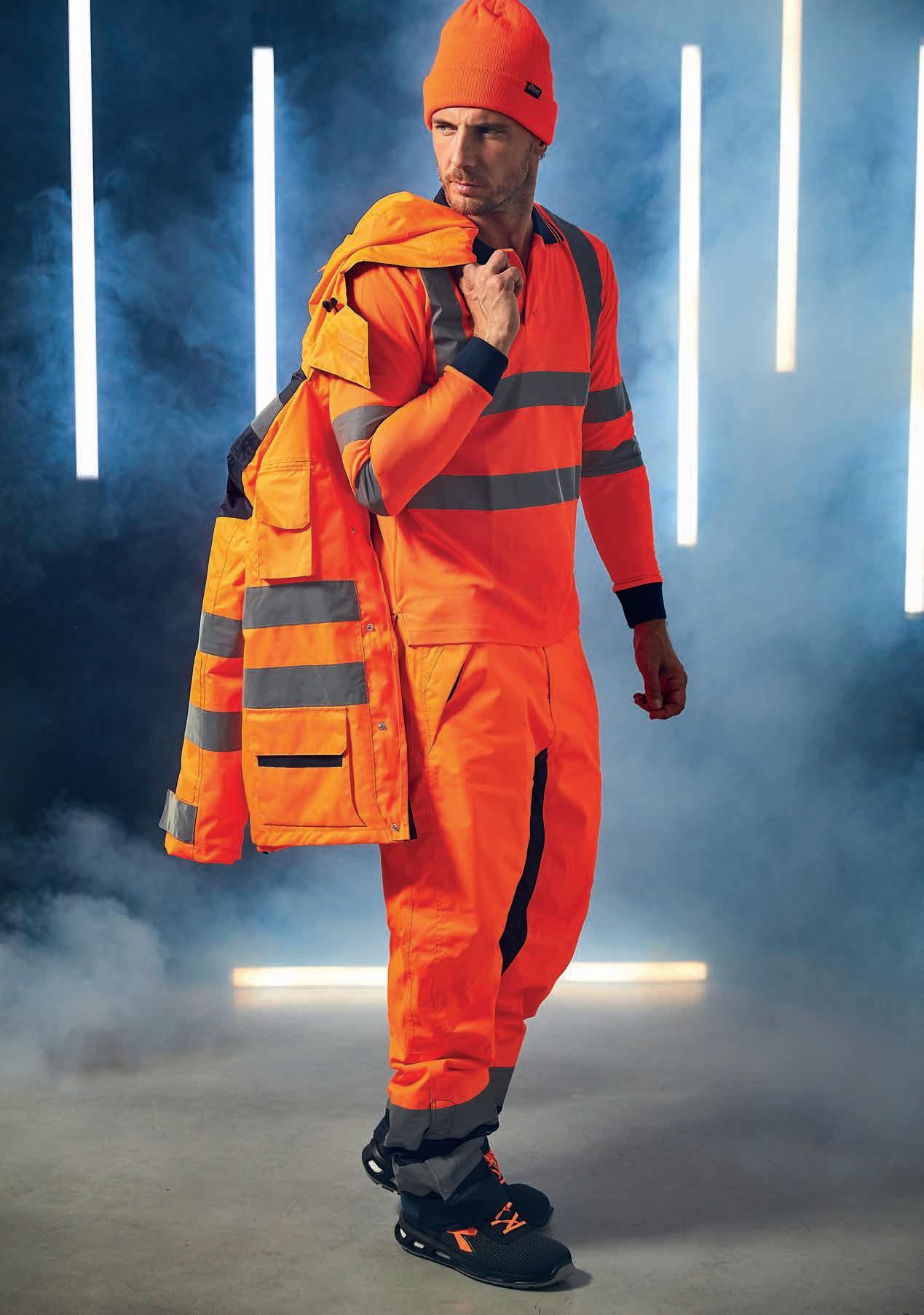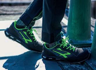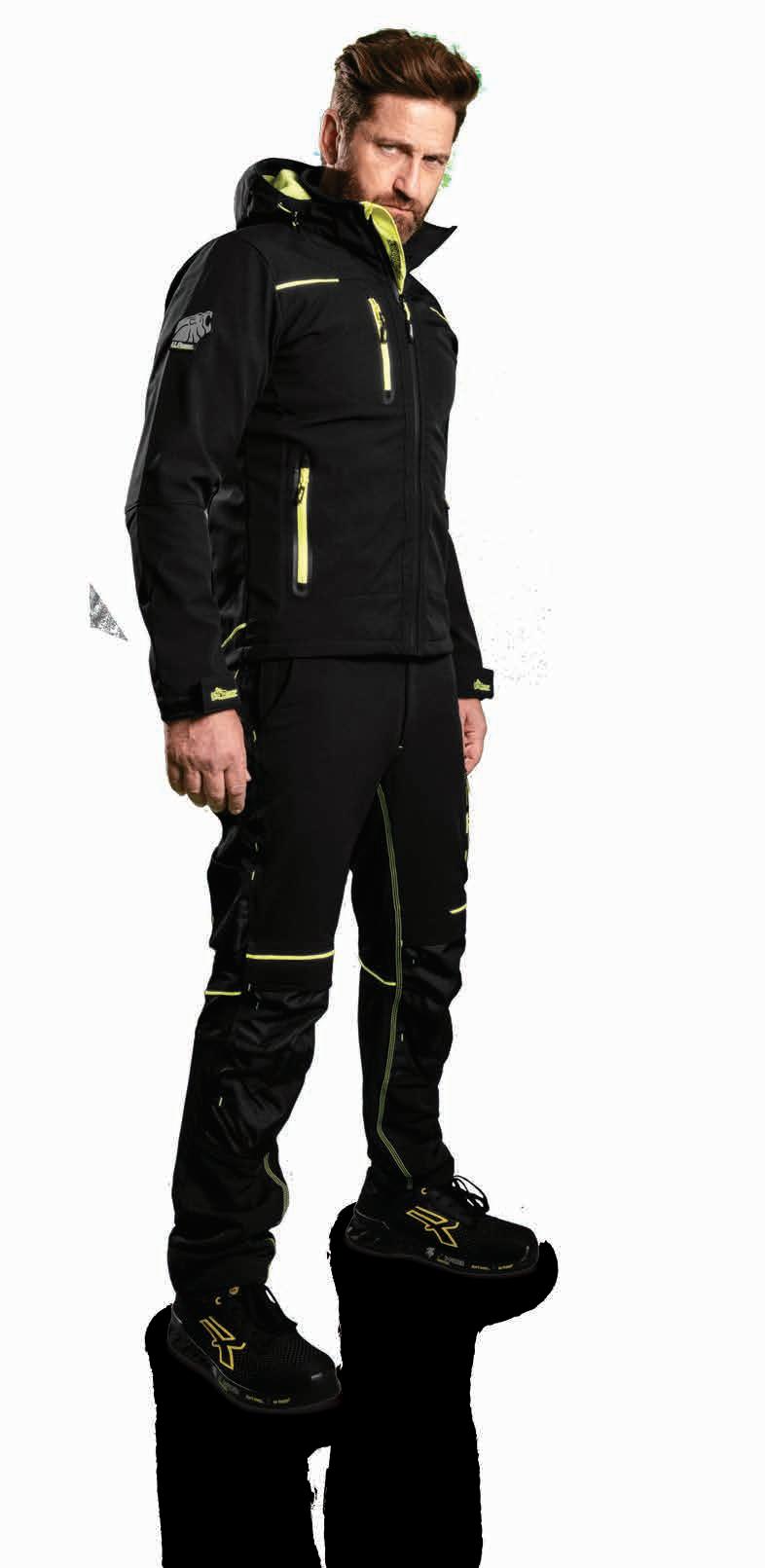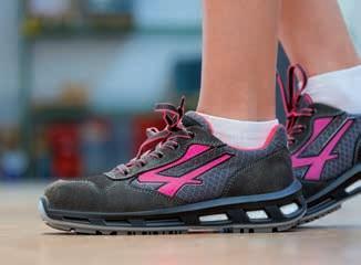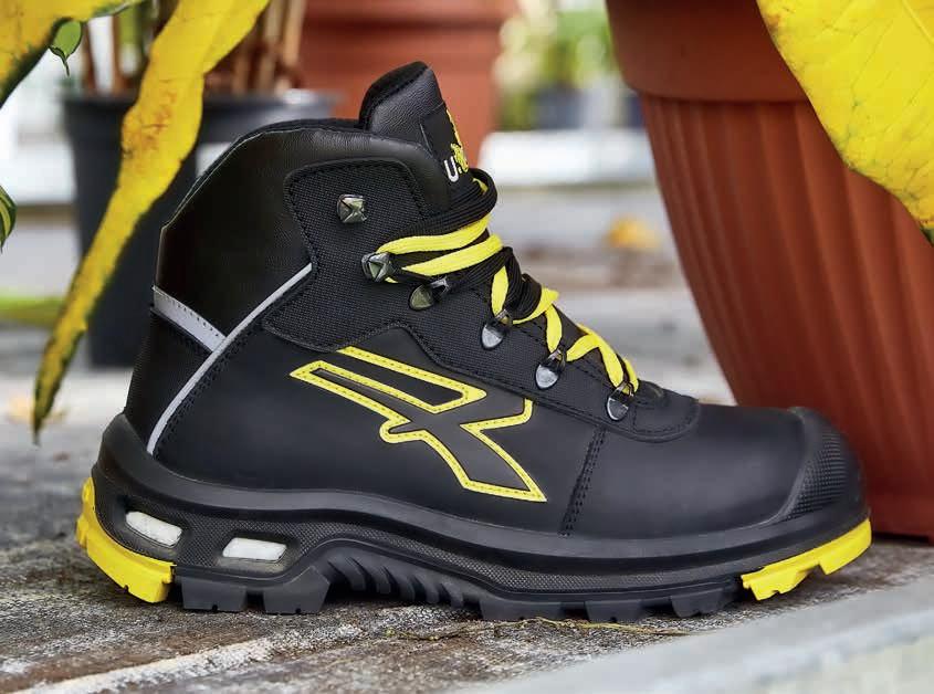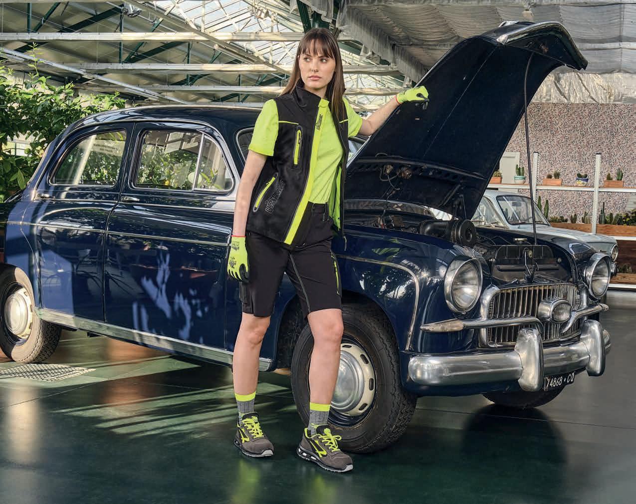 Shown in the picture: RAINBOW sweatshirt in Yellow Fluo; ATOM LADY trousers in Black Carbon; YELLOW safety shoes from Red Lion range.