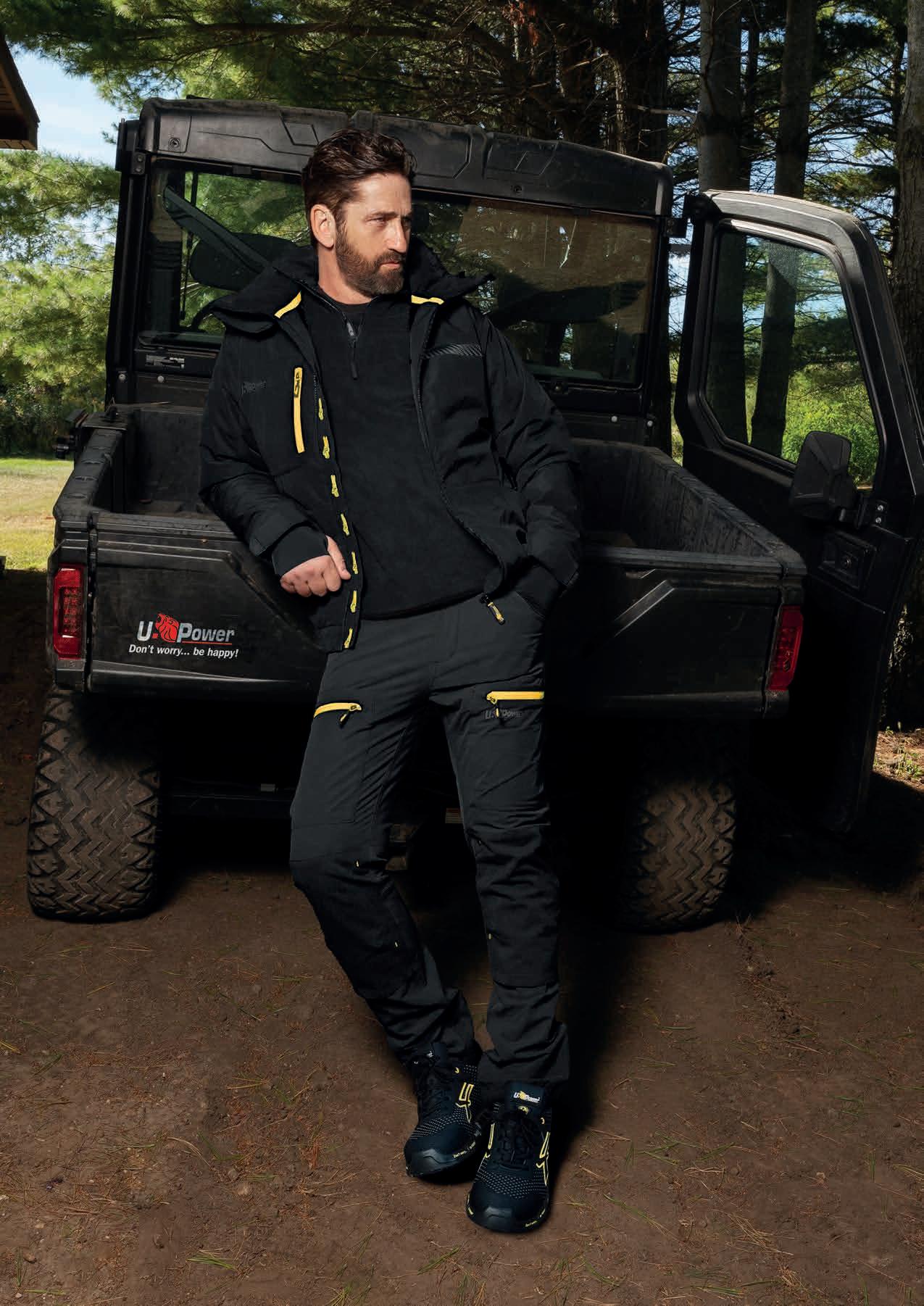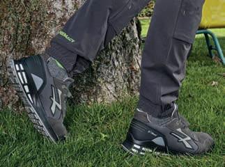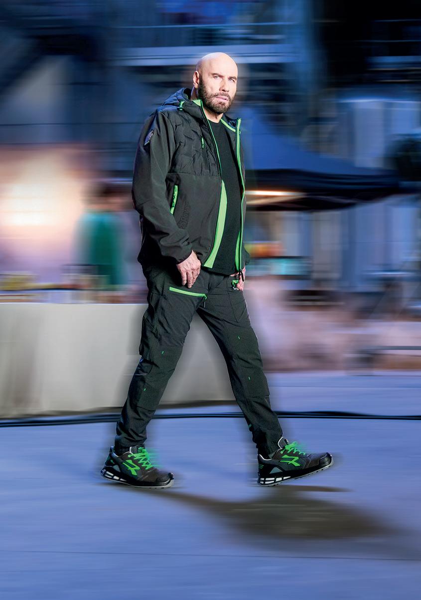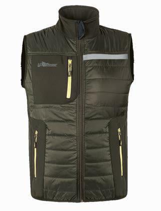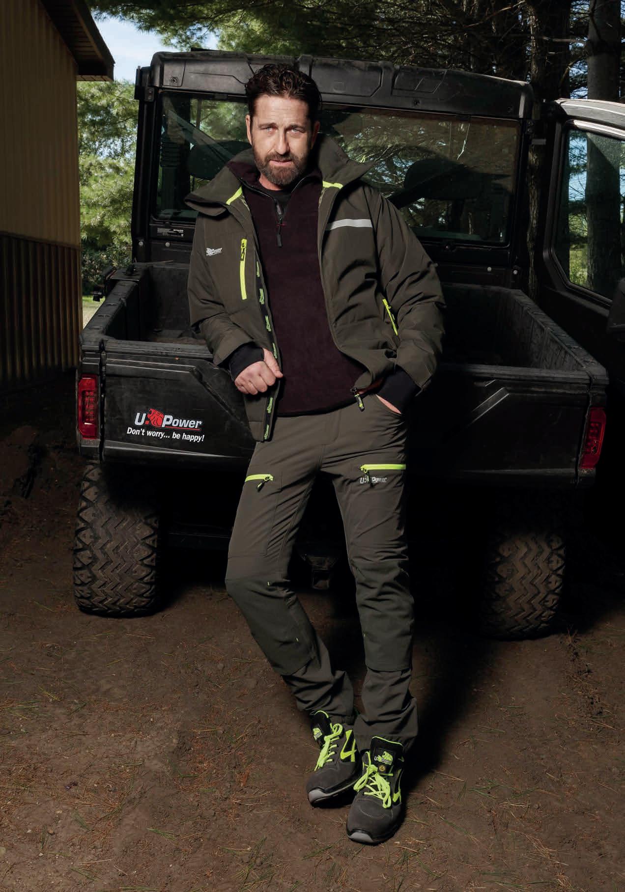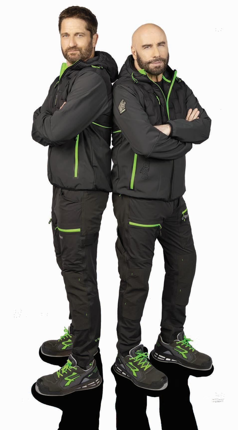 Shown in the picture: WALL gilet in Dark Green; HORIZON trousers in Dark Green; U-POWER ICON gloves; ELVIS safety shoes from Red Premium range.