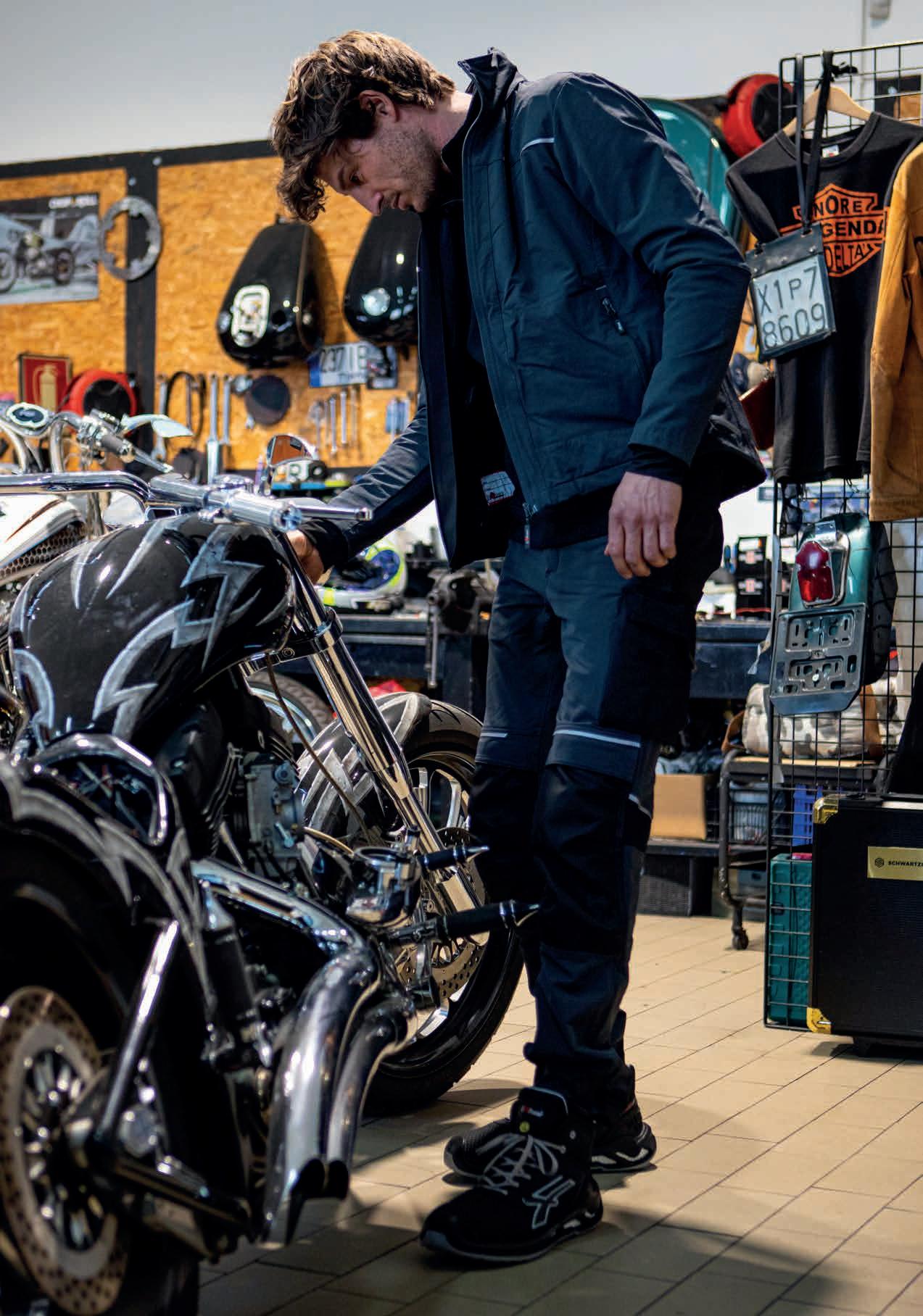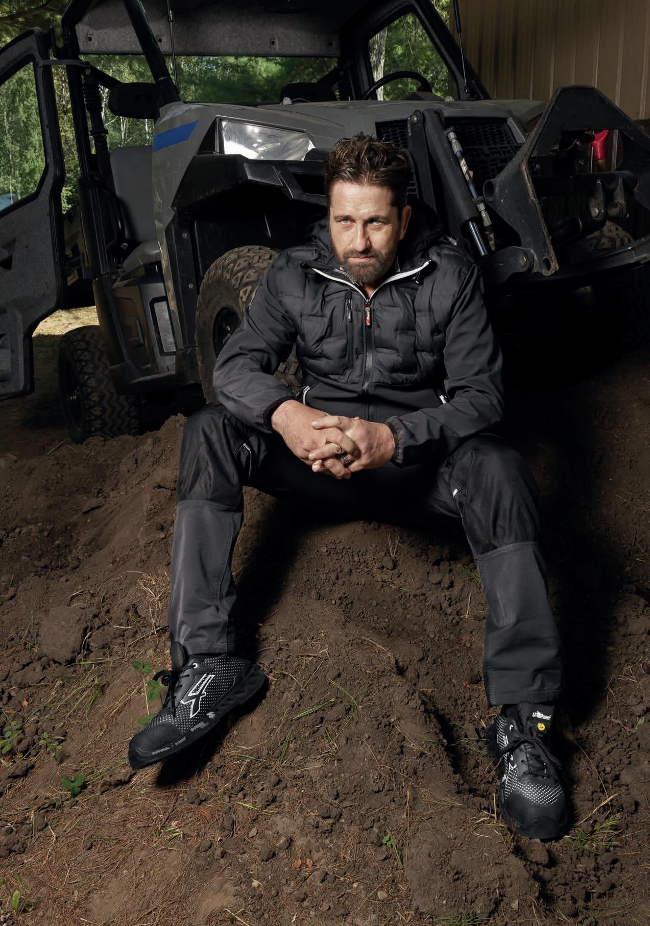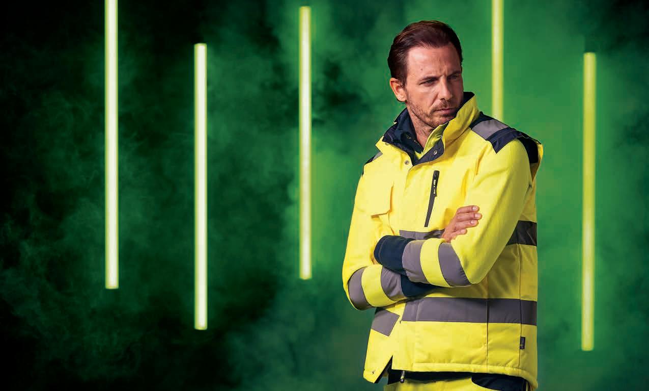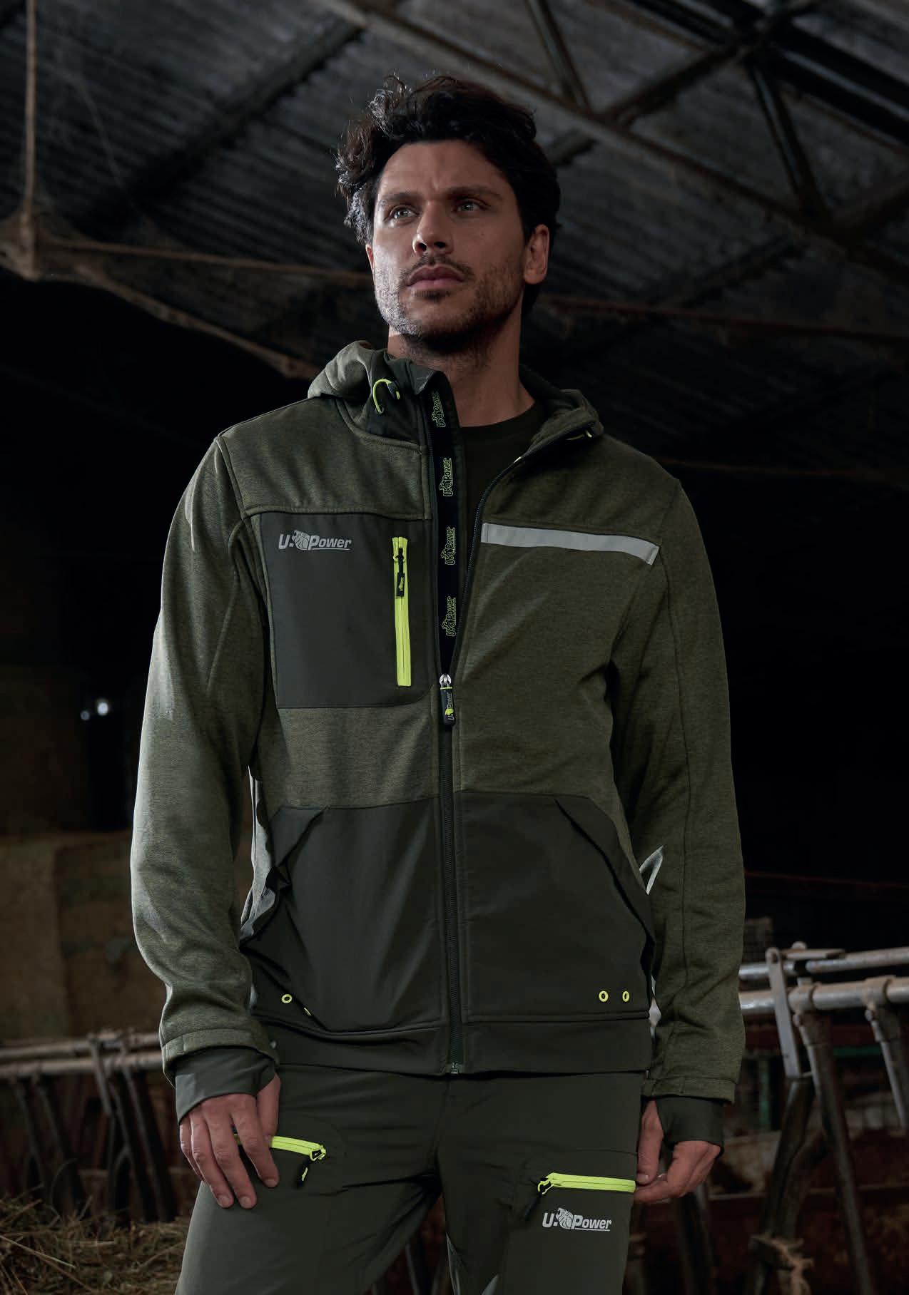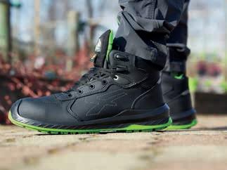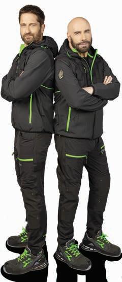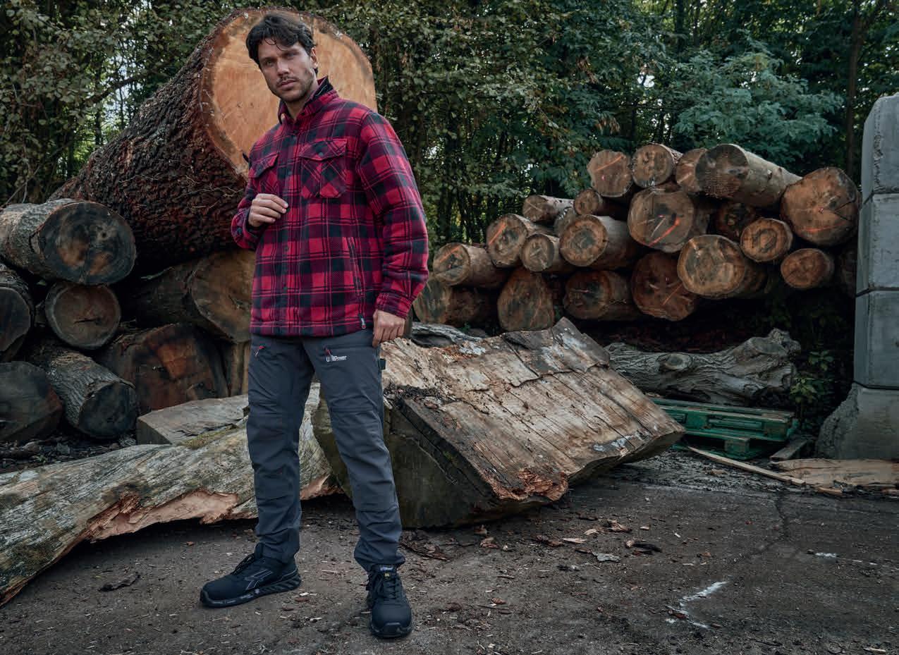 Shown in the picture: WALL gilet in Dark Green; HORIZON trousers in Dark Green; U-POWER ICON gloves; ELVIS safety shoes from Red Premium range.