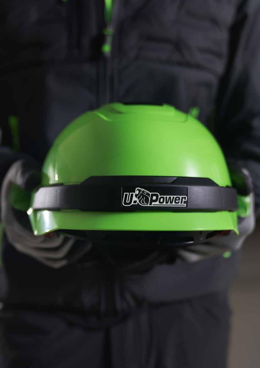 Charles Leclerc, ambassadeur international de la marque U-Power, porte un casque de sécurité ANTARES en Green Fluo, un polo GAP en Black Carbon, des gants U-Power U-POWER FLEX, un jean TOMMI en Black Carbon.