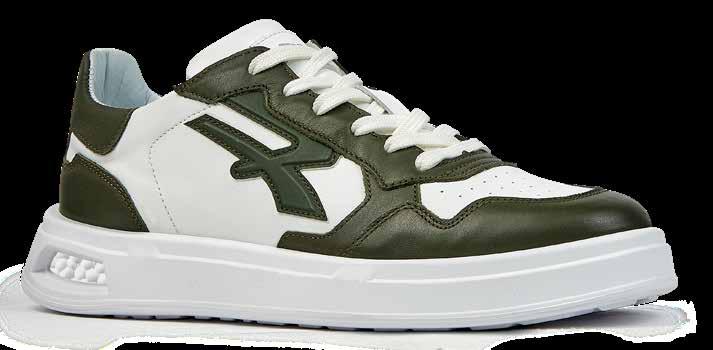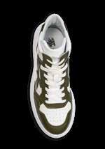 • Obermaterial aus weichem weißem Leder mit grünen Applikationen