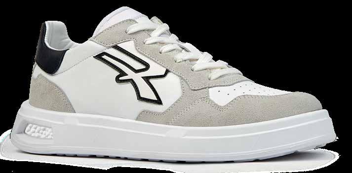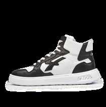 • Obermaterial aus weichem weißem Leder mit schwarzen Applikationen