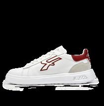 • Obermaterial aus weichem weißem Leder mit kastanienbraunen Applikationen