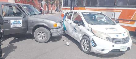 Durango, Dgo.- Un taxista que no se percató de la paleta de alto en un céntrico crucero de la capital, provocó un aparatoso accidente en el que su pasajera requirió atención médica; por fortuna se le reportó fuera de peligro.