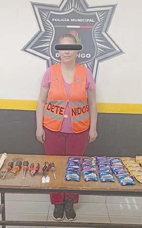 Durango, Dgo.- Policías municipales detuvieron a una mujer adulta que cometió el delito de robo en un centro comercial del bulevar Francisco Villa, lugar en que tomó una cantidad significativa de alimento para mascotas y varias herramientas. La presunta ladrona es Brenda Élida, de 46 años de edad, quien dijo tener su domicilio en el fraccionamiento Caminos del Sol, cuyo arresto se logró gracias a la intervención inicial de vigilantes del establecimiento comercial afectado. Fue el viernes cuando la fémina ingresó a Soriana Jardines y, poco a poco, comenzó a acumular mercancía entre sus pertenencias, lo cual fue detec-