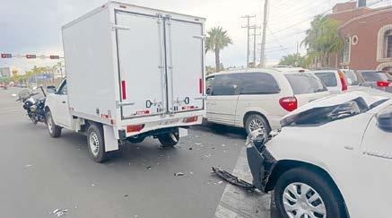 semáforo. Los hechos ocurrieron en el cruce de la referida vialidad y la avenida Jesús García. Ahí, el conductor de una Nissan NP-300 con caja seca se detuvo porque el semáforo cambió a rojo. Detrás de él iba la Toyota, cuyo conductor no guardó la distancia suficiente y, cuando se dio cuenta de la detención, frenó a fondo pero no logró detenerse.