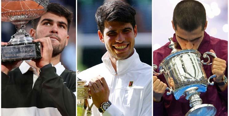 El español acumula seis títulos de Grand Slam: US Open (2022 y 2025), Wimbledon (2023 y 2024) y Roland Garros (2024 y 2025). El Australian Open es el único grande donde todavía no ha logrado instalarse en una final.