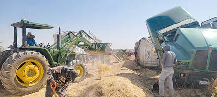 Guadalupe Victoria, Dgo.Un tráiler cargado con más de 30 toneladas de maíz fue parte de un fuerte accidente ocurrido en territorio del municipio de Guadalupe Victoria; pese a lo aparatoso, no hubo personas con lesiones de consideración.