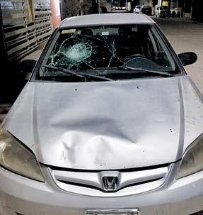 vecinos golpeaban con piedras y palos su carro.
