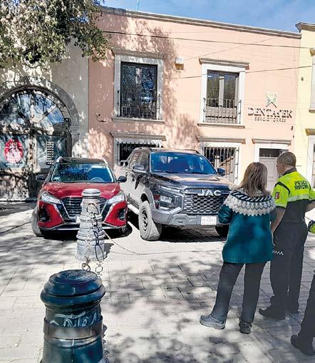 Durango, Dgo.- Elementos de la Policía Municipal apoyaron a una señora de 65 años de edad que se tornó agresiva luego de quedar “encajonada” en un espacio de estacionamiento del centro de la ciudad; los agentes tuvieron que sacarle el vehículo porque ella no logró hacerlo. Los hechos ocurrieron en Francisco Sarabia e Independencia, lugar en el que la fémi-