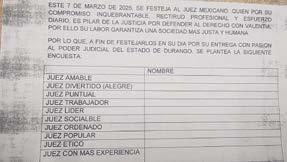 Durango, Dgo.- En un contexto donde la sociedad manifiesta un hartazgo evidente frente a la injusticia, la impunidad y la ausencia de una justicia pronta y expedita, el Poder Judicial del Estado de Durango vuelve a colocarse en el centro de la crítica pública. Esta vez no por una resolución trascendente ni por avances en el abatimiento del rezago judicial, sino por una iniciativa que ha sido calificada como frívola y ofensiva: un concurso interno para celebrar el Día del Juez Mexicano. De acuerdo con documentos que comenzaron a circular entre trabajadores del Tribunal, el Consejo de la Judicatura impulsó un cuestionario con categorías como “Juez Divertido”, “Juez Popular” o “Juez Alegre”, dinámicas que para muchos resultan impropias de la solemnidad y responsabilidad que exige la función jurisdiccional. La justicia -reclaman- no es un certa-