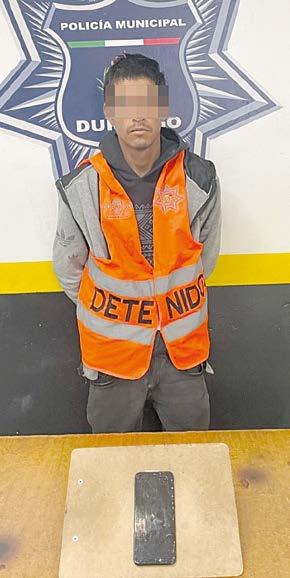 Durango, Dgo.- Elementos de la Policía Municipal detuvieron, en el fraccionamiento Villas del Guadiana IV, a un sujeto que acababa de arrebatar su teléfono celular a otro hombre; el arresto se logró gracias a la intervención de testigos, que retuvieron al presunto ladrón.