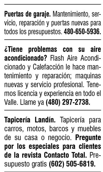 CONTACTO TOTAL “LA REVISTA QUE HABLA” ES UNA PUBLICACIÓN QUINCENAL GRATUITA PRODUCIDA POR MEDIOS HISPANOS LLC. Directora general: DIANA GUALDRÓN. Editor General: GABRIEL VILLALOBOS. Directora Creativa: DORA INÉS VILLALOBOS A. Diseñador Gráfico: CARLOS AGUILAR. Diseño: IN HOUSE MH. Web Master: DIVA PRODUCTIONS. Departamento Comercial: ZULMA LINZUAIN Fotografía: Angel Mena Photography Colaboradores en esta edición: LOURDES LERMA, FRANCISCO JAUREGUI Producción General: SANDRA CARMONA. Distribución: RED DE DISTRIBUCIÓN MEDIOS HISPANOS, MANUEL GIL E HILARIO ISLAS Community Manager: NICOLAS GUTIÉRREZ PARA ANUNCIARSE AQUI COMUNIQUESE AL TELÉFONO 602 751 2106 CONTACTO TOTAL: E-MAIL: contacto@revistacontactototal.com. TELÉFONO: 602 751 2106 www.revistacontactototal.com