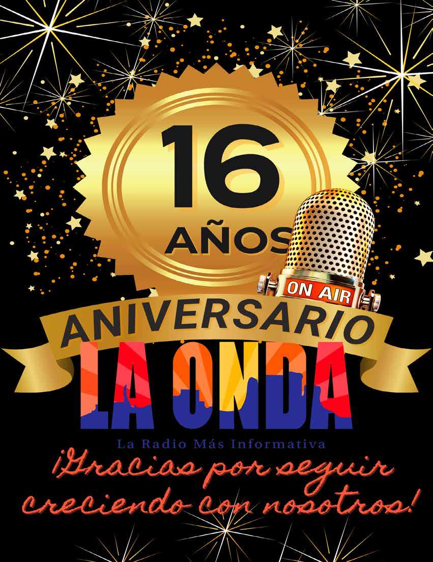 COMUNIDAD 6 Wrigley, el perrito terapeuta CUIDE SU SALUD 8 La vacuna actualizada contra el covid-19 protege contra una variante alarmante ESTRENOS 12 "Neón", “Messi Meets America”y "Lo que no sirve, estorba" ACTUALIDAD LOCAL 18 Steve Watson quiere que todos se gradúen de High School STREAMING 20 “Ella camina sola” en ViX ENTÉRATE 24 Quiénes regresan a Betty la fea, “Menem” y cómo postularse a los Premios John Lewis al liderazgo juvenil PANORAMA LOCAL 26 ¿Qué es manejar agresivamente? MES DE LA HERENCIA HISPANA 30 Emprendedores latinos que dejan huella PRIMER PLANO 32 Primera Oficina de Prevención de la Violencia Armada en la Casa Blanca EN LA MIRA 36 $6.000 en reembolsos por quitar el césped en Gilbert ¡PARE OREJA Y APUNTE! 40 A CHAMBEAR 42
