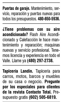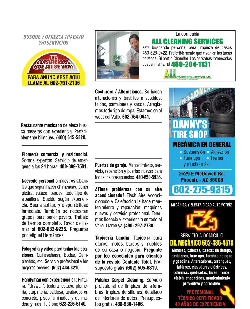 CONTACTO TOTAL “LA REVISTA QUE HABLA” ES UNA PUBLICACIÓN QUINCENAL GRATUITA PRODUCIDA POR MEDIOS HISPANOS LLC. Directora general: DIANA GUALDRÓN. Editor General: GABRIEL VILLALOBOS. Directora Creativa: DORA INÉS VILLALOBOS A. Diseñador Gráfico: CARLOS AGUILAR. Diseño: IN HOUSE MH. Web Master: DIVA PRODUCTIONS. Departamento Comercial: ZULMA LINZUAIN Fotografía: Angel Mena Photography Colaboradores en esta edición: LOURDES LERMA, FRANCISCO JAUREGUI Producción General: SANDRA CARMONA. Distribución: RED DE DISTRIBUCIÓN MEDIOS HISPANOS, MANUEL GIL E HILARIO ISLAS Community Manager: NICOLAS GUTIÉRREZ PARA ANUNCIARSE AQUI COMUNIQUESE AL TELÉFONO 602 751 2106 CONTACTO TOTAL: E-MAIL: contacto@revistacontactototal.com. TELÉFONO: 602 751 2106 www.revistacontactototal.com
