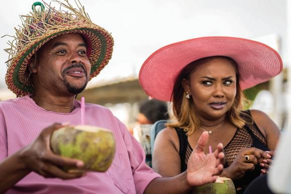 But if the original Coming to Africa was a struggle, things were easier for the sequel, Welcome to Ghana. In the rst installment, Jamison took over the lead acting role out of necessity, playing Adrian, an ambitious American business executive who has his life changed on a visit to Ghana’s bustling capital, Accra. Much of that life-change is thanks to Akosua, a charming schoolteacher played by Nana Ama McBrown. “It was my rst time in Ghana, literally,” he says. “In a way, that helped me play the character because I was in the same situation as the character. I literally was seeing these things for the rst time. is time, I was able to have more of a game plan ahead of time and say, ‘ is is how I want to do things.’”