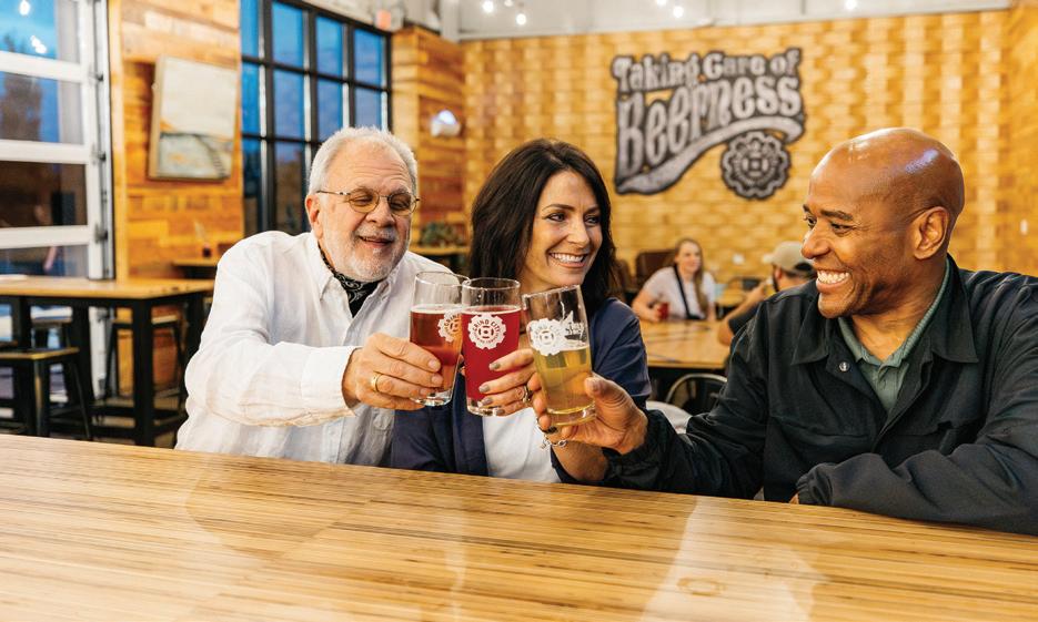 PHOTOS: PATRICIA LOCKHART (Clockwise from le ) Game night at Muggin; burgers for kids; beers at Crosstown Brewery for adults
