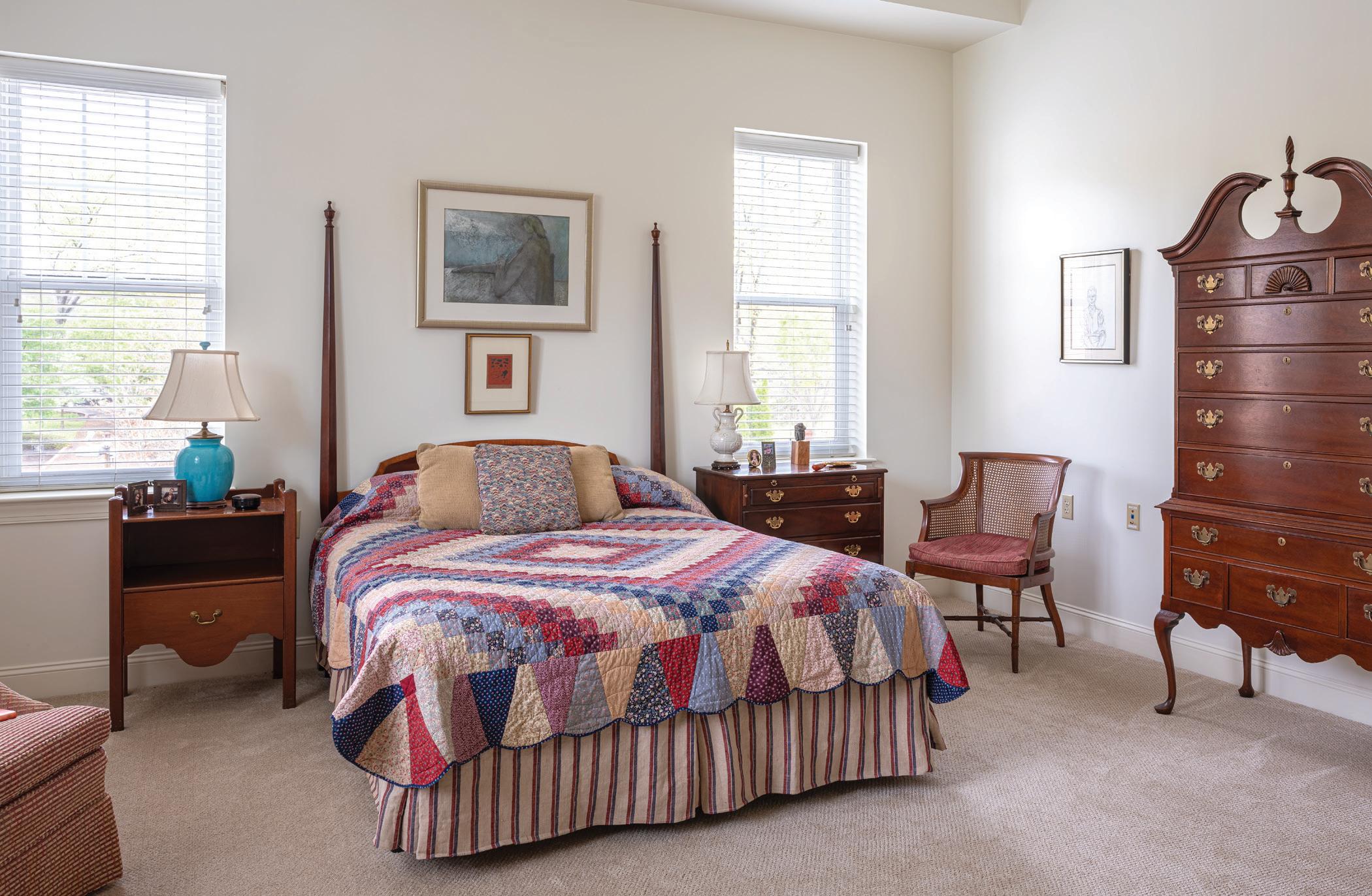 Jeannette admits her initial reluctance to leave friends behind in New Hampshire, “but I quickly made so many friends here. There’s always something to do, the staff has been wonderful, and the food is fabulous. We have everything here in one place — a store, beauty parlor, pool, library, and even a chapel. There’s an unbelievable sense of community, and you really feel cared for.”